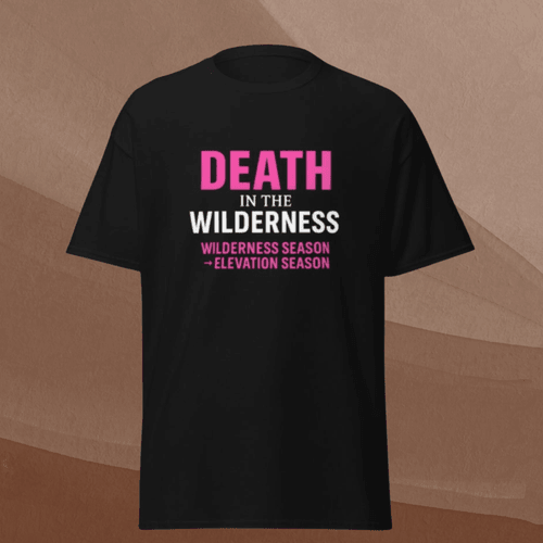 Alongside their story, this book includes a powerful devotional designed to help readers navigate their own wilderness journey and discover God’s greater purpose.Ships 2025-09.QuantityComing soonDeath in the Wilderness T-Shirt